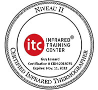 C’est en 2012 qu’il a fondé son entreprise Inspection Thermique Québec. Il ne cesse depuis d’acquérir de nouveaux clients et de parcourir la grande région pour inspecter des maisons, des véhicules récréatifs, des bateaux et autres. Ayant suivi une formation ITC de niveau 2, M. Lessard est devenu une référence en thermographie à Cap-Rouge, Stoneham, Ste-Foy et ailleurs à Québec. Il détient également une certification FLIR, une marque de produits thermographiques de pointe. M. Lessard est membre en règle de l’Association des inspecteurs en bâtiment du Québec (AIBQ) et détient une assurance erreurs et omissions.