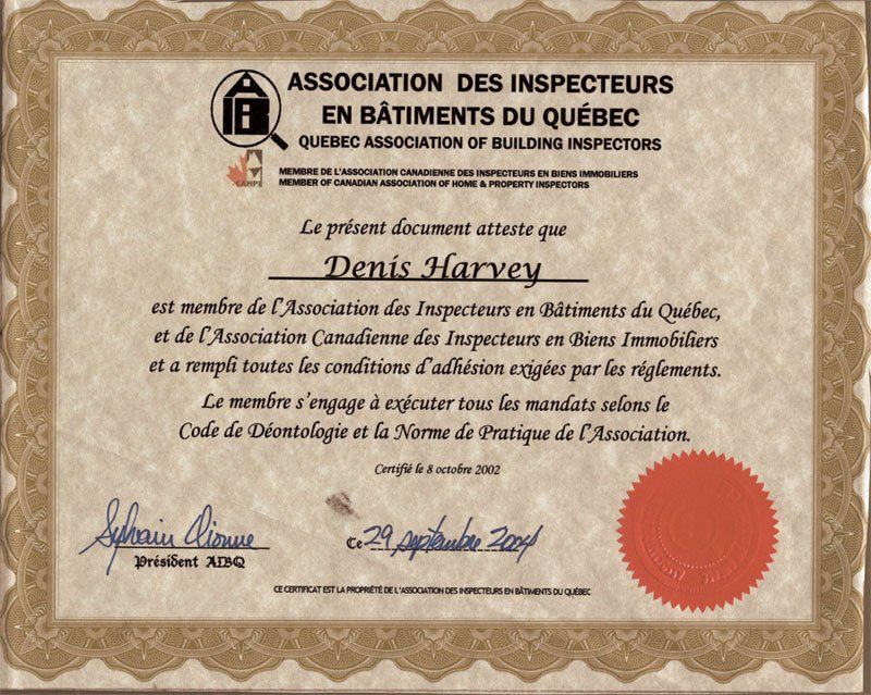 Membre Agréé: AIBQ, ANIEB CAHPI, ASHI